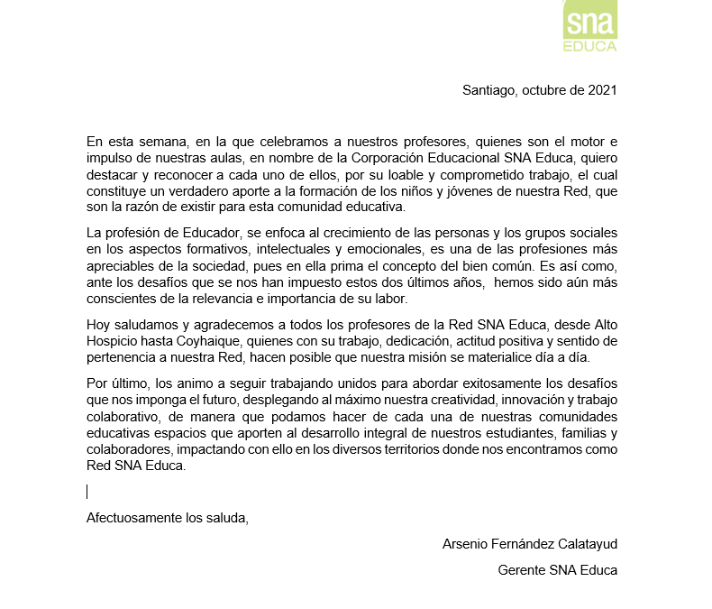 Carta saludo hacia los profesores